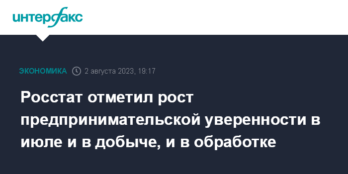 Росстат отметил рост предпринимательской уверенности в июле и в добыче, и в обработке