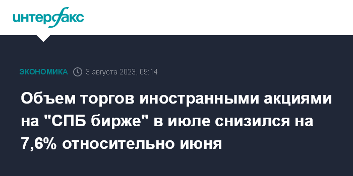Объем торгов иностранными акциями на "СПБ бирже" в июле снизился на 7,6% относительно июня