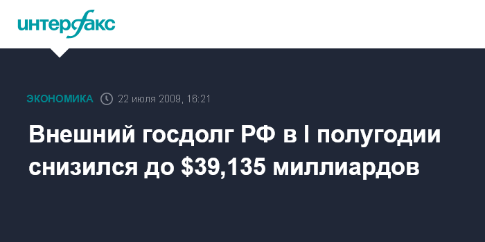 Внешний госдолг РФ в I полугодии снизился до $39,135 миллиардов