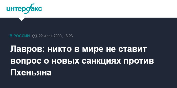 Лавров: никто в мире не ставит вопрос о новых санкциях против Пхеньяна