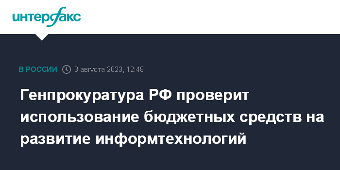 Генпрокуратура РФ проверит использование бюджетных средств на развитие информтехнологий