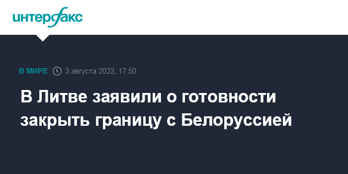 Москва. 3 августа. INTERFAX.RU - Президент Литвы Гитанас Науседа заявил об усилении охраны границы с Белоруссией и готовности ее закрыть.
