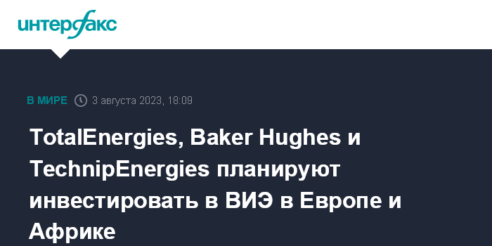 TotalEnergies, Baker Hughes и TechnipEnergies планируют инвестировать в ВИЭ в Европе и Африке