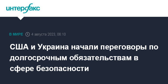 Москва. 4 августа. INTERFAX.RU - Вашингтон и Киев в четверг начали переговоры по долгосрочным обязательствам в сфере безопасности, сообщил госдепартамент США.