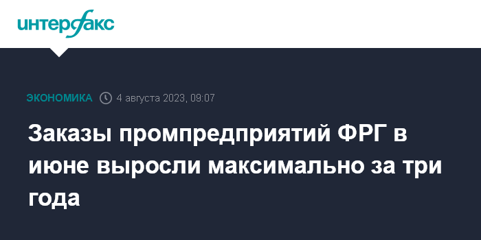 Москва. 4 августа. INTERFAX.RU - В июне 2023 года объем заказов промышленных предприятий Германии увеличился на 7% по сравнению с предыдущим месяцем, сообщило Министерство экономики страны. Рост показателя стал рекордным с июня 2020 года.