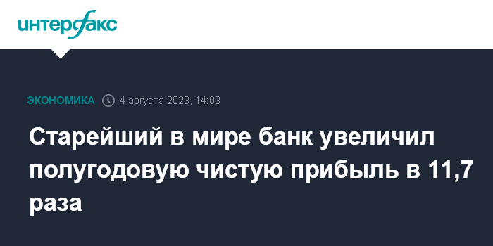Старейший в мире банк увеличил полугодовую чистую прибыль в 11,7 раза