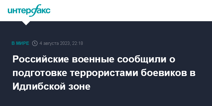 Москва. 4 августа. INTERFAX.RU - Российские военные в Сирии с помощью разведки установили, что группировка "Джабхат ан-Нусра" (запрещена в РФ) организовала подготовку не менее 200 боевиков из "Исламской партии Туркестана" (запрещена в РФ) в Идлибской зоне деэскалации.