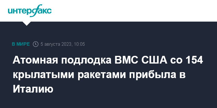 Атомная подлодка ВМС США со 154 крылатыми ракетами прибыла в Италию