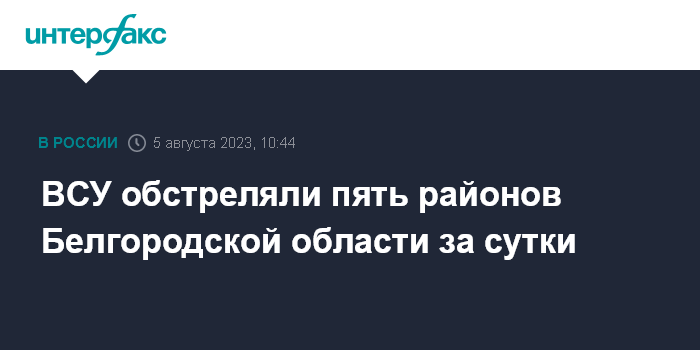 Москва. 5 августа. INTERFAX.RU - Губернатор Белгородской области Вячеслав Гладков сообщил в своем телеграм-канале об ударах, нанесенных ВСУ по территории региона за минувшие сутки.