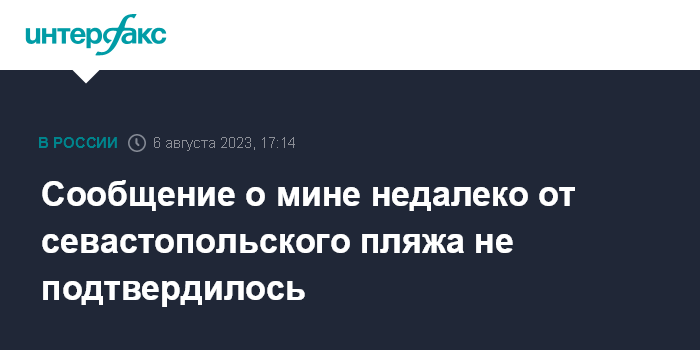 Москва. 6 августа. INTERFAX.RU - Сообщение о морской мине в районе одного из пляжей Севастополя оказалось ложной тревогой, сообщил в воскресенье губернатор Михаил Развожаев.