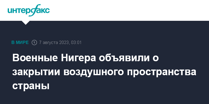 "Столкнувшись с угрозой интервенции, которая становится все более очевидной благодаря подготовке соседних стран, воздушное пространство Нигера закрыто (...) для всех самолетов до дальнейшего уведомления", - цитирует телеканал заявление нигерских военных.