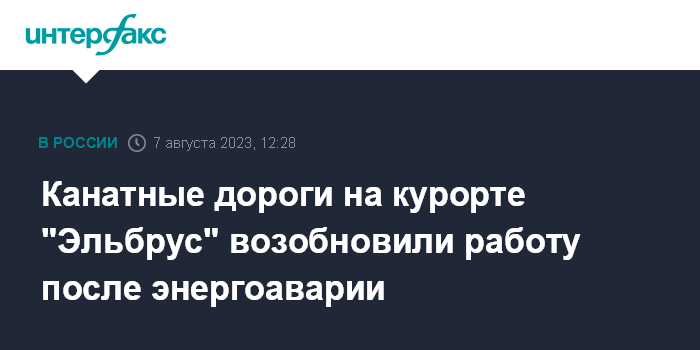 Москва. 7 августа. INTERFAX.RU - Вновь запущены в работу канатные дороги на всесезонном курорте "Эльбрус" в Кабардино-Балкарии, сообщили "Интерфаксу" в АО "Кавказ.РФ".