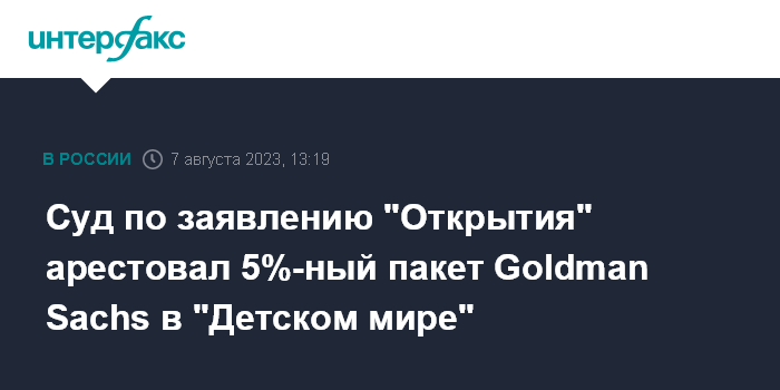 Суд по заявлению "Открытия" арестовал 5%-ный пакет Goldman Sachs в "Детском мире"