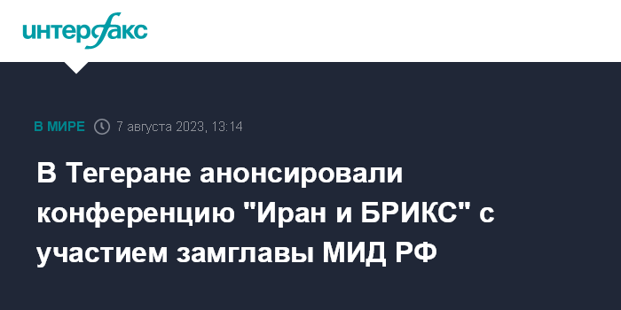 В Тегеране анонсировали конференцию "Иран и БРИКС" с участием замглавы МИД РФ