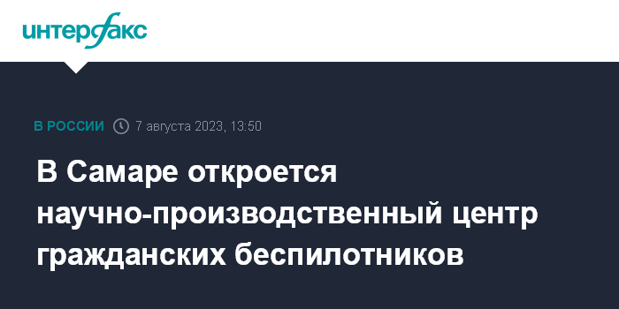 Москва. 7 августа. INTERFAX.RU - В Самаре в конце августа начнет работу первый региональный научно-производственный центр (НПЦ) гражданских беспилотных авиационных систем (БАС), сообщила пресс-служба правительства области.