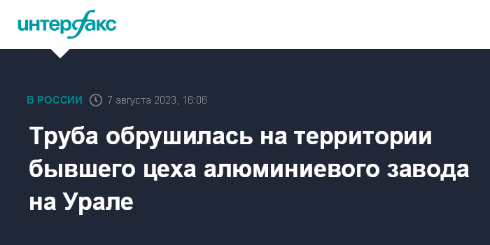 Труба обрушилась на территории бывшего цеха алюминиевого завода на Урале