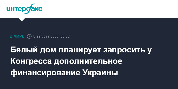 Москва. 8 августа. INTERFAX.RU - Администрация президента США Джо Байдена работает над запросом о дополнительном финансировании Украины, сообщает телеканал CNN.