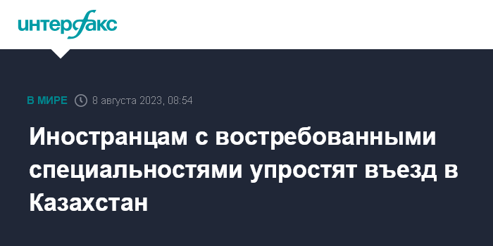 Москва. 8 августа. INTERFAX.RU - Премьер-министр Казахстана Алихан Смаилов поручил МИД и Минтруда обеспечить упрощенный въезд иностранным гражданам, специальность которых востребована в стране. Он сообщил об этом на заседании правительства.