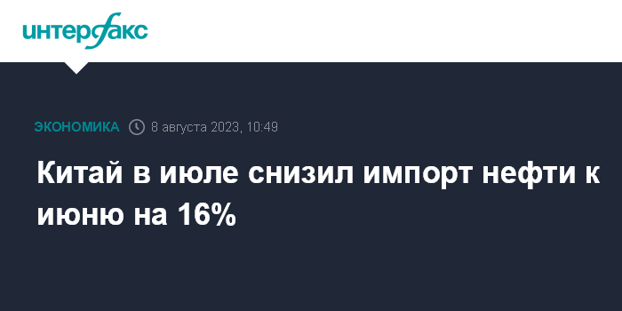 Китай в июле снизил импорт нефти к июню на 16%