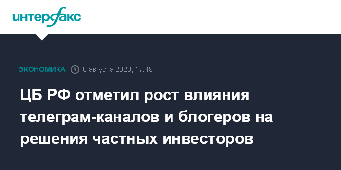 ЦБ РФ отметил рост влияния телеграм-каналов и блогеров на решения частных инвесторов