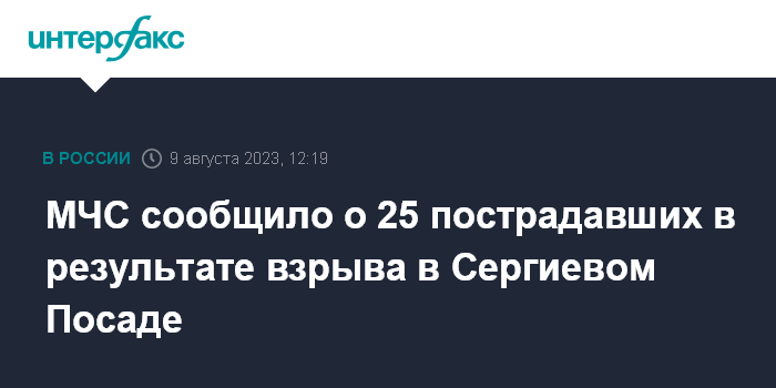 МЧС сообщило о 25 пострадавших в результате взрыва в Сергиевом Посаде