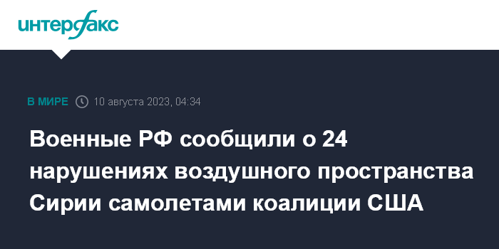 Военные РФ сообщили о 24 нарушениях воздушного пространства Сирии самолетами коалиции США