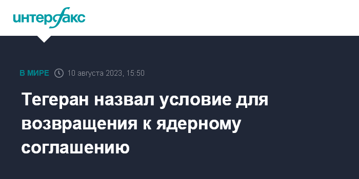 Тегеран назвал условие для возвращения к ядерному соглашению