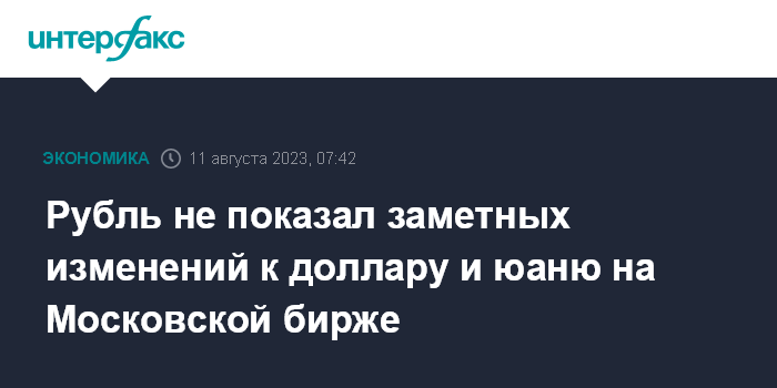 Москва. 11 августа. INTERFAX.RU - Доллар США и юань меняются незначительно на Московской бирже на старте торгов в пятницу, рубль почти стабилен в ожидании новых стимулов к движению.