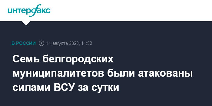 Москва. 11 августа. INTERFAX.RU - Губернатор Белгородской области Вячеслав Гладков сообщил об ударах, нанесенных с украинской стороны по региону за минувшие сутки.
