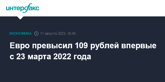 Евро превысил 109 рублей впервые с 23 марта 2022 года