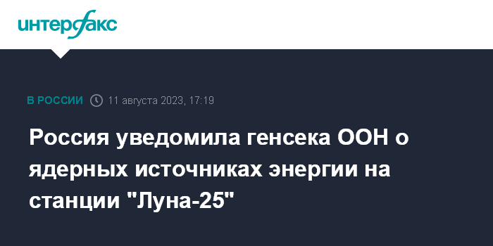 Россия уведомила генсека ООН о ядерных источниках энергии на станции "Луна-25"