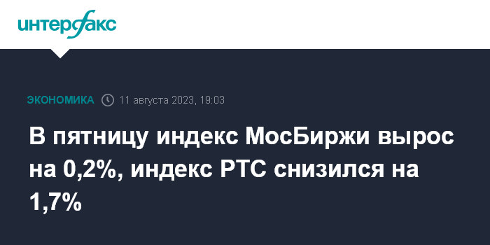 В пятницу индекс МосБиржи вырос на 0,2%, индекс РТС снизился на 1,7%