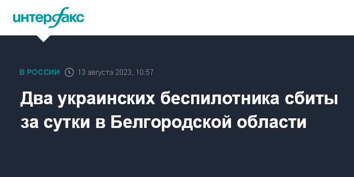 Москва. 13 августа. INTERFAX.RU - Губернатор Белгородской области Вячеслав Гладков сообщил об обстрелах со стороны ВСУ за сутки трех районов, пострадавших нет, сбиты два беспилотника.
