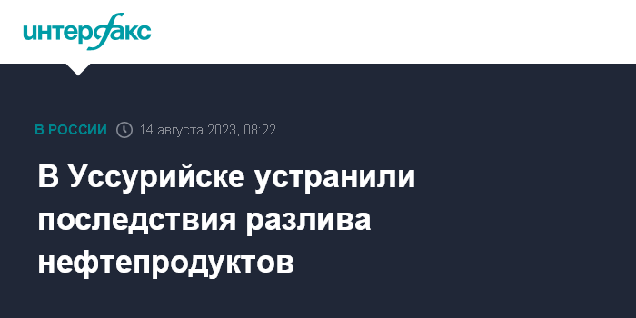 Москва. 14 августа. INTERFAX.RU - В Уссурийске полностью очистили территорию микрорайона "Семь ветров", где из-за тайфуна произошел разлив мазута, сообщила пресс-служба администрации города.