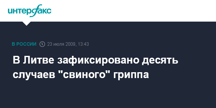 Москва. 23 июля. INTERFAX.RU - В Литве подтверждено еще три новых случая заболевания гриппом A(H1N1), сообщает агентство BNS. Таким образом общее число заболевших составляет 10 человек.