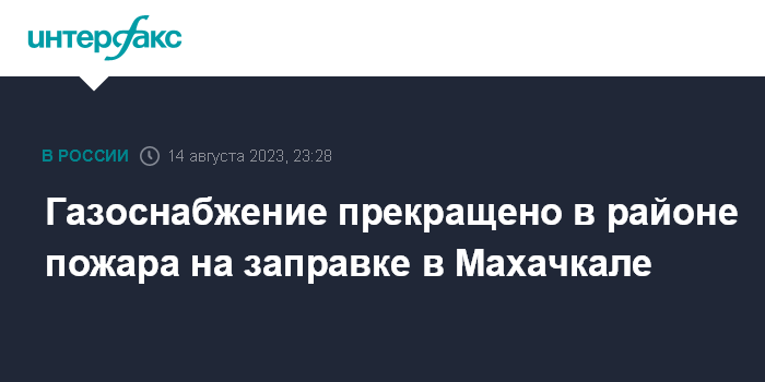 Москва. 14 августа. INTERFAX.RU - Сотрудники газовых служб перекрыли подачу газа в микрорайоне, где горит заправка в Махачкале, сообщает администрация города.