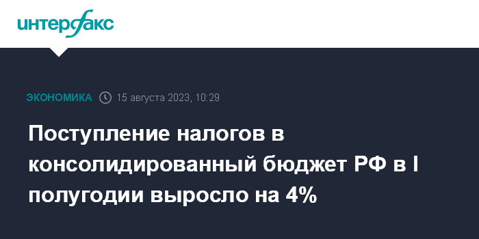 Поступление налогов в консолидированный бюджет РФ в I полугодии выросло на 4%