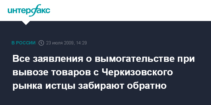 Все заявления о вымогательстве при вывозе товаров с Черкизовского рынка истцы забирают обратно