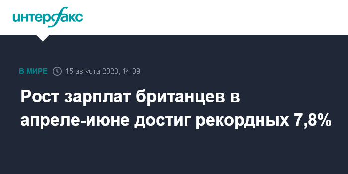 Москва. 15 августа. INTERFAX.RU - Размер средней недельной зарплаты без учета бонусов в Великобритании в апреле-июне подскочил на 7,8%, зафиксировав рекордный рост за все время подсчета этого показателя, то есть с 2001 года, сообщило Национальное статистическое управление (ONS).