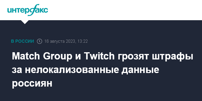 Match Group и Twitch обвиняются в повторном нарушении требования о локализации данных российских пользователей на территории РФ (ч. 9 ст. 13.11 КоАП РФ). Им грозят административные штрафы от 6 до 18 млн рублей каждой.
