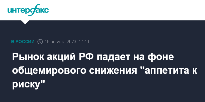Рынок акций РФ падает на фоне общемирового снижения "аппетита к риску"
