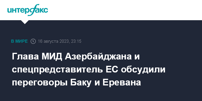 Глава МИД Азербайджана и спецпредставитель ЕС обсудили переговоры Баку и Еревана