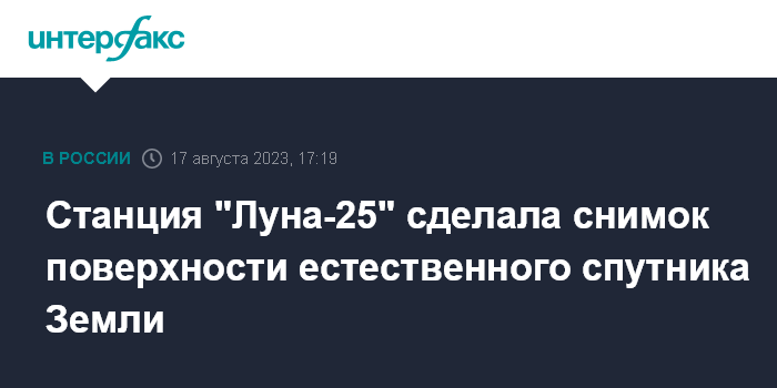 Станция "Луна-25" сделала снимок поверхности естественного спутника Земли