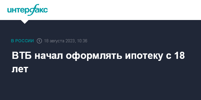 "С сегодняшнего дня мы снижаем минимальный возраст для получения ипотеки до 18 лет. (...) В июле средняя сумма депозита вкладчиков ВТБ в возрасте 18-21 года составила 388 тыс. рублей. При дополнительной поддержке родителей они вполне могут оформить свой первый жилищный кредит", - рассказал начальник управления "Ипотечное кредитование" ВТБ Сергей Бабин.
