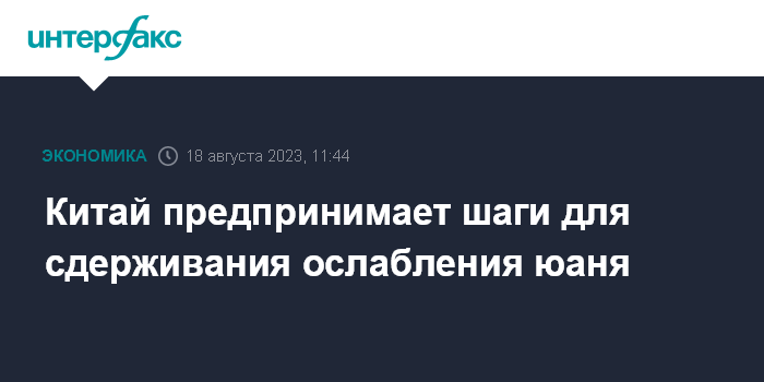 Москва. 18 августа. INTERFAX.RU - Власти Китая принимают меры для сдерживания ослабления юаня после выхода серии слабых статданных по экономике КНР, пишет газета Financial Times.