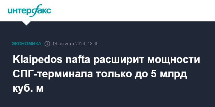 "Мы рассматриваем расширение (регазификационных мощностей - ИФ) только до 5 млрд кубических метров. Причин для такого решения много, в том числе и технологических", - сообщил Шиленскис на онлайн-семинаре для инвесторов в пятницу.
