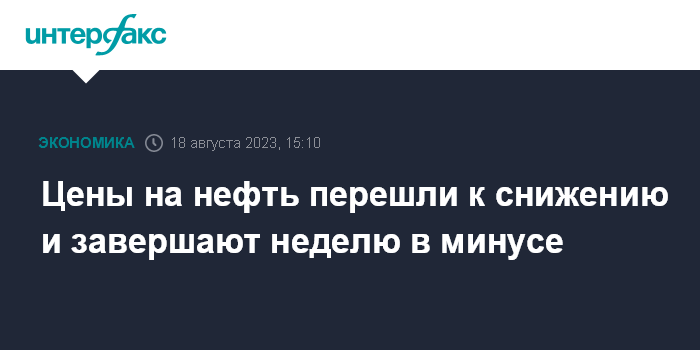 Москва. 18 августа. INTERFAX.RU - Цены на нефть начали опускаться днем в пятницу и завершают неделю снижением на фоне слабых статданных из Китая и опасений новых повышений процентной ставки Федрезерва.