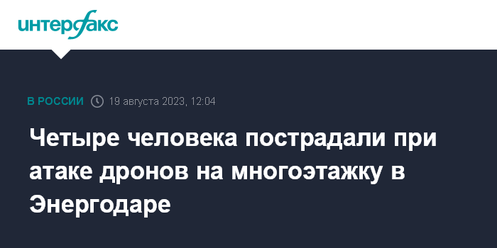 "Нанесли удар двумя беспилотными летательными аппаратами по жилому многоэтажному дому в Энергодаре. Пострадали не менее четырех человек", - сказал он.