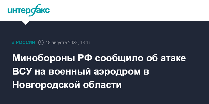 Минобороны РФ сообщило об атаке ВСУ на военный аэродром в Новгородской области