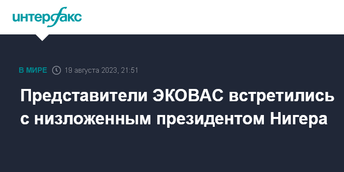 Ранее в субботу делегация ЭКОВАС прибыла в Ниамей для переговоров с путчистами. О визите стало известно накануне после опубликования содержания телефонного разговора между главой Евросовета Шарлем Мишелем и президентом Нигерии и председателем ЭКОВАС Болой Тинубу.